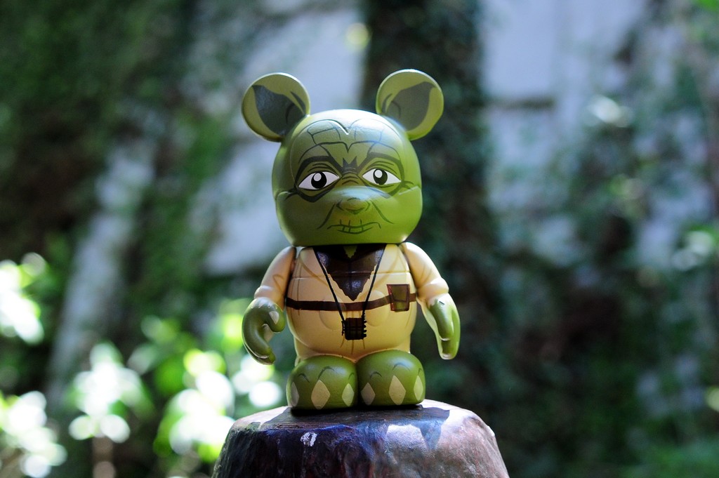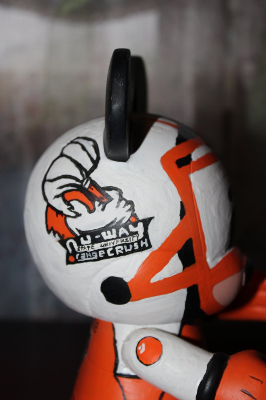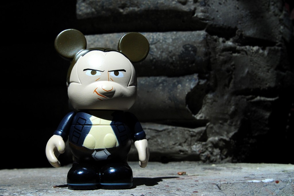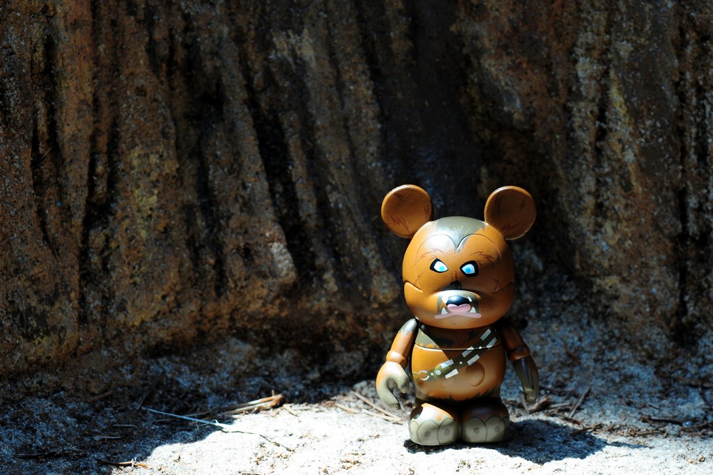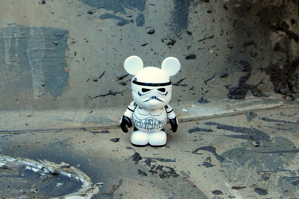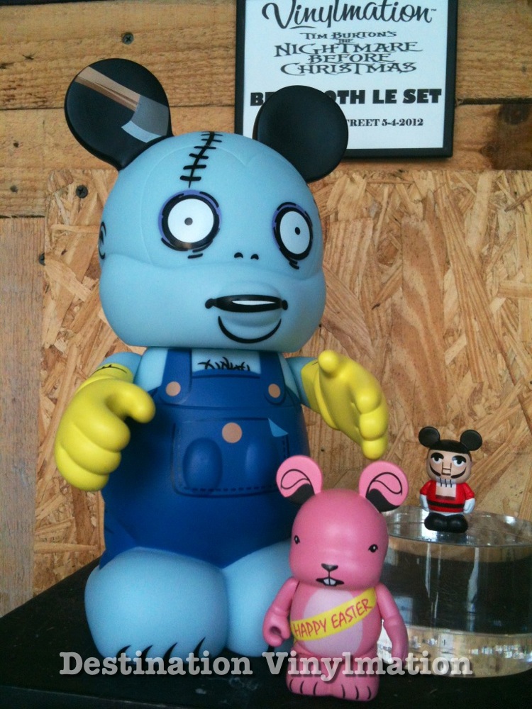 Overall the window is fun and somewhat interactive. There are Vinylmation ALL OVER this window display. Vinylmation hanging at the very top of the window, some trying to paint the large create your own placed in the center of the window, and some just hanging around in boxes and lights.
