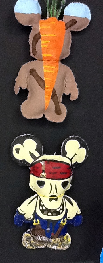 3-D Plush- Students designed, cut, and painted the front and back of a Vinylmation drawn on canvas before sewing and stuffing the canvas together to create a plush.