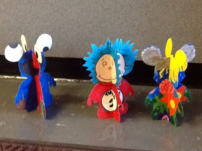3-D Two- Faced Paper Stand-up- This project came from our students becoming so involved that they really had a hard time choosing just one character or idea for their Vinlymations. For this project, they could have created as many as four Vinylmations and many happily took the challenge. Each Vinylmation is double sided and presents a different view from each angle.
