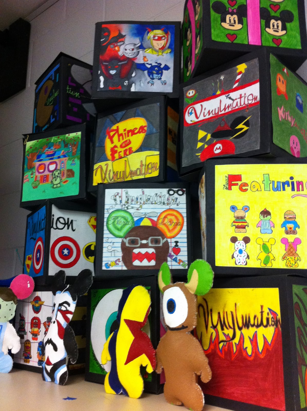 Vinylmation Box- The boxes were created to display all of their projects for the unit in a unique way. The students had to create six Vinylmation related sides for the box, in any manner they chose. Some students chose to represent their projects on the side of the box, while others were still so full of Vinylmation ideas that they created entirely new images.