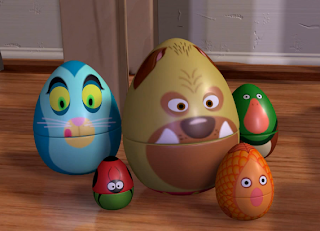 To complete the set he has Puck, Bookworm, and Stretch. Two additional awesome characters included are, Totoro (a Japanese Miyazak character who has a cameo in Toy Story 3) and the Troika nesting doll. Take a peek above at the full turn around of Troika. And then below look at the original character.