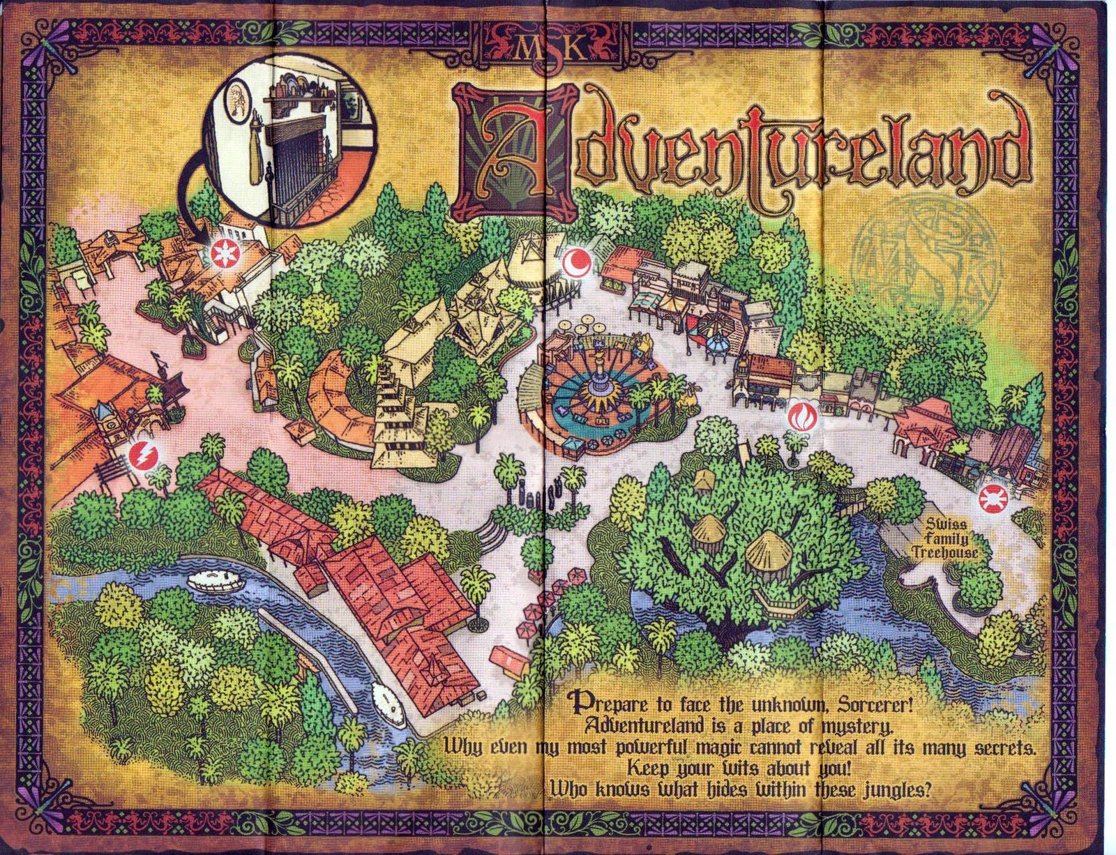 In concept, the comparisons to Kim Possible at EPCOT are unavoidable, but the technology is more like that of the Midship Detective Agency aboard the Disney Dream cruise ship. Sorcerers is played like the Midship game and has the interactivity of Kim Possible but varies in some important aspects. Kim Possible has environments that actually move. Water sprouts, characters move into view, etc. In Sorcerer’s, all the actions are video based. However, there are some well timed lighting effects like when a spell hits the villain. And in some locations there are small moving parts like curtains that draw back to unveil the screen. I could use a few more moving parts, but the more video based it is, the easier it will be to update the experience every few years. Let’s just hope they do.