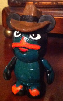 Nathan: Agent P was my second custom and was not as hard as Roger was for me. I used a lot more of the vinyl, but not all of it. I wanted to capture his legs and feet from the front and back. I also enjoyed making the hat instead of just painting it on. I made Agent P for my 4 year old son who love Phineas and Ferb. I admit I do too, shhh don’t tell anyone it will be our little secret!!!