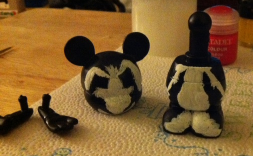 Nathan: I decided to not make him fat! Most artists use the whole VM and stretch out the character so I wanted to try something a little different. I really like the way he turned out, though his mouth gave me a huge struggle being on Mickey’s nose and still doesn’t look quite right. I know a lot of people think I should have used all the space, but I chose a different path and experimented! That is the great thing about being an artist, having your own vision and going with it. With him being my first custom and painting on a 3D canvas I gained a new appreciation for all the custom and Disney Artists.