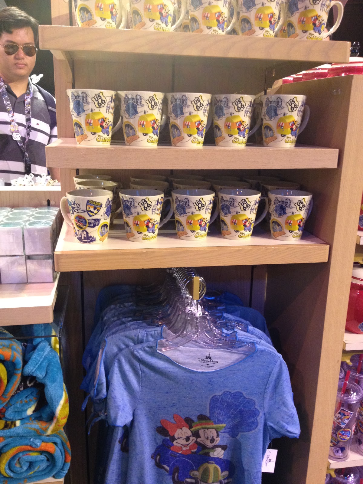 Now back to the Merchandise! There are plenty of T-shirts, jackets, mugs, plastic cups, key chains, and pins etc that were made for Cars Land. There is a limited edition 1000 pin set of ride posters, as well as a limited edition coin set.