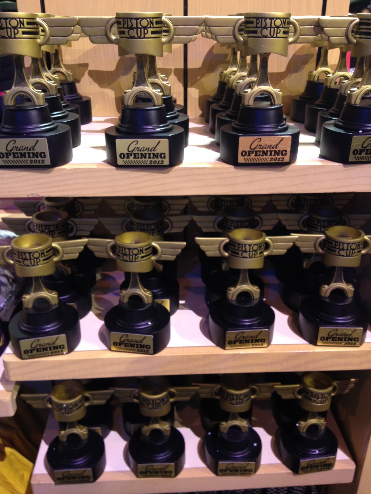 My favorite thing pertaining to Cars Land (which I bought!) has to be the Piston Cup figurine! I think this is absolutely awesome! It says Grand Opening on the front, and on the back of the Piston Cup it says “Cars Land”.
