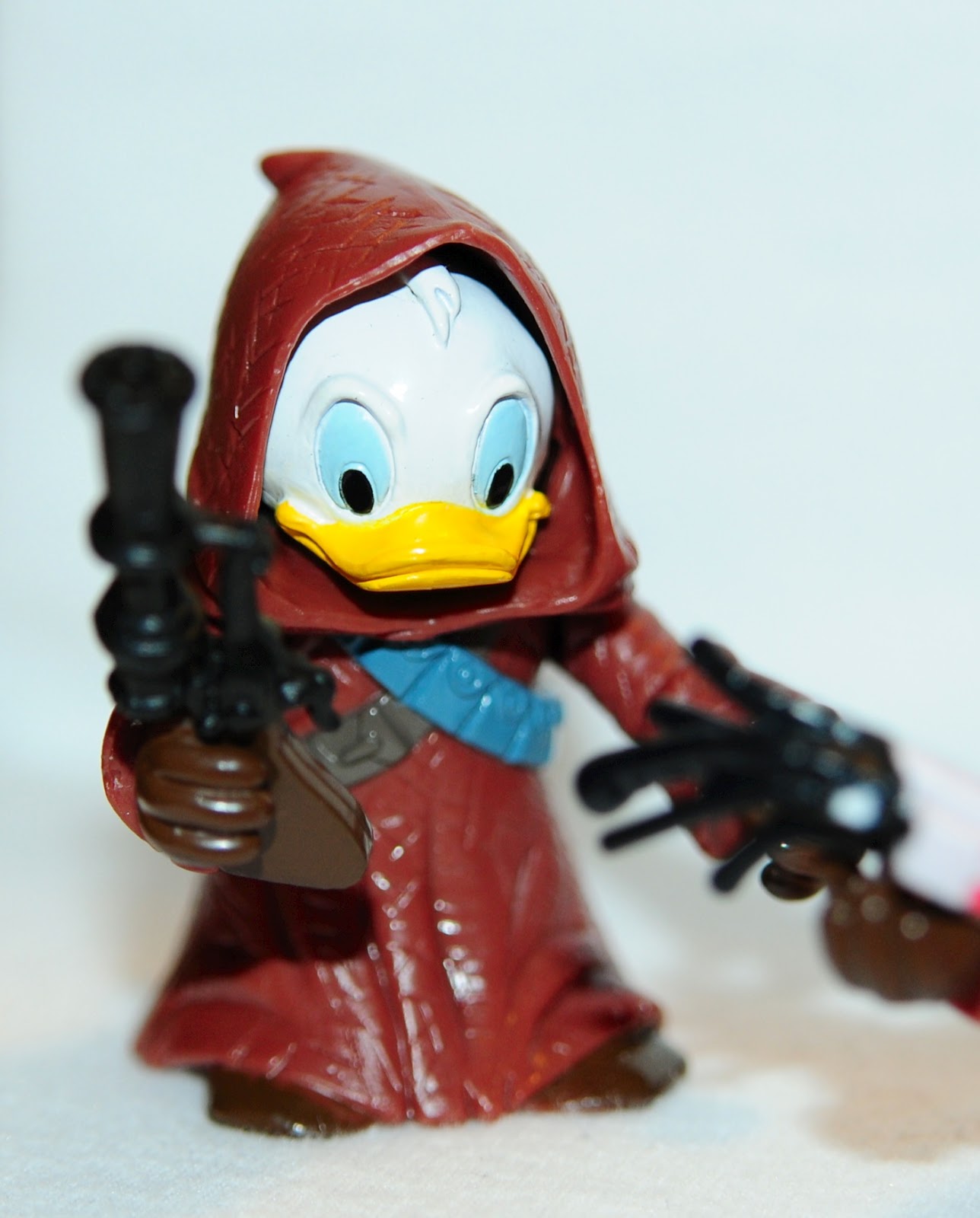 Donald Duck takes on the role of Commander Cody. Just a little too much like the Donald playing the Stormtrooper for me, but still a cool figure. The helmet opens and closes in two pieces over the head just like his Stormtrooper counterpart.