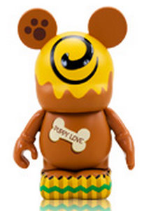 We don’t have many Daisy Vinyls yet (Nerds Rock!). I like the clean look of the mostly white vinyl that makes the purple wrapper and pink bow really pop! A cool use of the ears in this set with little nods to the characters. Daisy of course has a daisy. She also has hearts, daisies and bows in the wrapper. Her candy on the body says “sweet” with her bow, as opposed to Donald’s “bittersweet” candy. Thanks to the commenters below with sharp eyes that helped us with this one. |