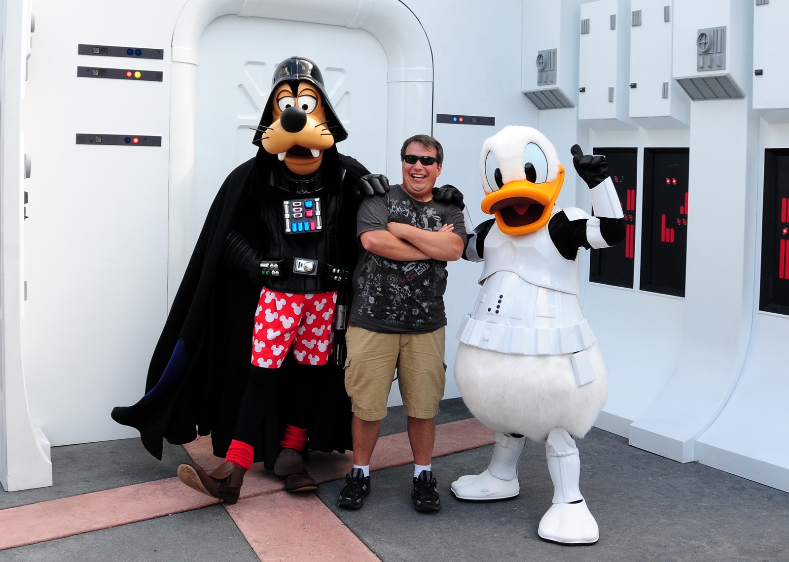 The one surprise is actually Goofy. Not in using Goofy as Darth Vader, but I suspected the artist would take a more Characters at the Parks approach. Meaning, I thought we would see Goofy in his Mickey boxers as he appears during Star Wars Weekends…
