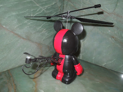 David purchased this One-Of-A-Kind helicopter design by Tyler Dumas at D-Street Orlando. I have seen a bunch of customs past through the displays there, but this gem had eluded me. It was created in the early days of Vinylmation, 2009, so that is probably why. I like how the sign points out that this is not a toy.
