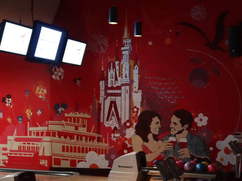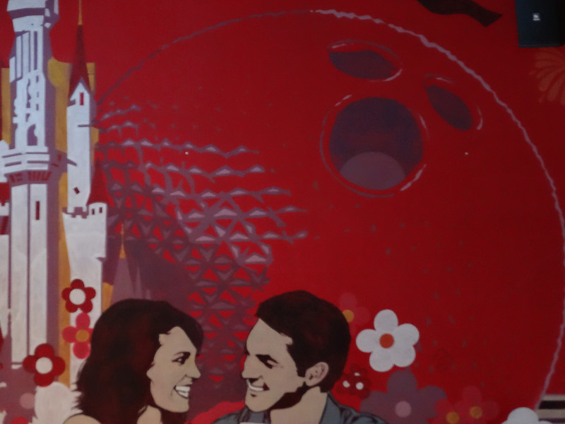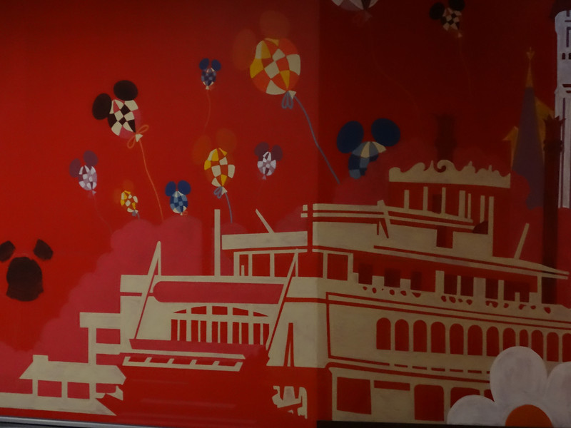 A mual downstairs depicts artwork from the old Walt Disney World shopping bags
