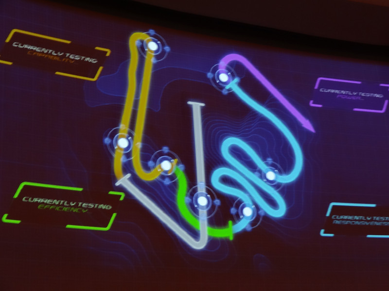 The four categories of the tests are displayed as well, we assume cars from each category will go on display below these