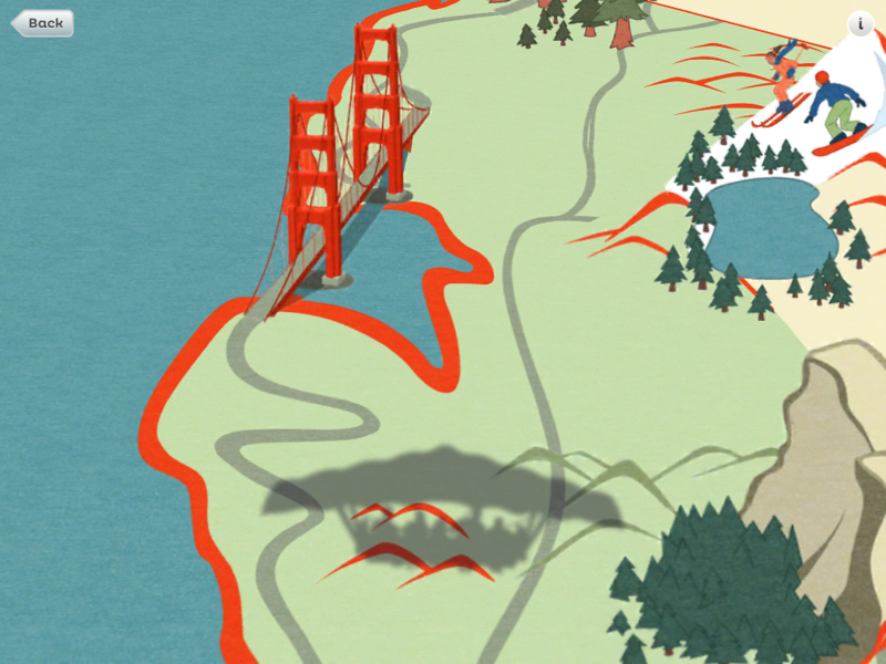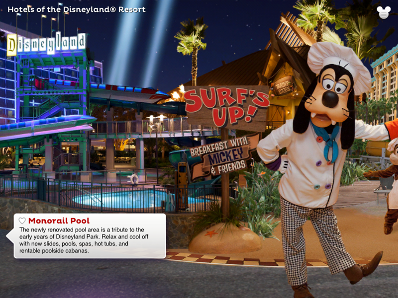 More than 100 exciting experiences are shared with beautiful images, animation and interactive touch points. With a simple swipe of your fingers, you can explore Pirates of the Caribbean, Star Tours – The Adventures Continue, the themed suites at the Disneyland Hotel and much more. Watch for animation and fun surprises as you scroll through the adventures.