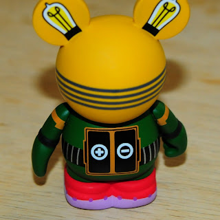 The twelve designs are by Billy Davis (Sea Creatures) and the set has no chaser. Blind boxes cost $12.95 and a case includes two full sets of 12. I like these designs a little better than Robots 1 (designed by various Disney Store artists). I love the retro style that is achieved here, along with several accessory pieces such as the helmet, light bulb and antenna. The addition of a couple “human” faces behind the costumes is also a fun touch. There are a few features on the backs including “on/off” switches…