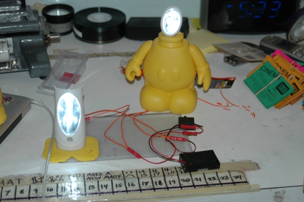 Rust: The Chernabog figure was definitely something new for me. I know Evilos has put lights in figures before, but this was my first try. I used to do robotics, so at least knowing exactly how everything needed to be wired and set up was easy, but it’s still kind of awkward stuffing all the wires and lights and batteries inside of a Mickey figure. The lights themselves are LED Arrays taken from a flashlight, the switch is for an rc car, and the batteries are just three AAAs. Not including the base figure, there’s probably under $20 in parts to make it light up, so it’s not all that expensive to do something cool like that.