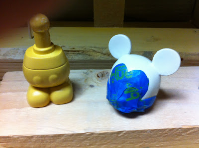Let me just say, I give everyone props who make custom Vinylmations! So much work goes in to them! A few problems I ran into with spray paint were first, to take my time to achieve a nice and uniform finish, and second to apply many light coats of paint. I saw some pooling of paint a few times. Also, just touching them would leave fingerprints on them. I also masked out the paint on the face too early and it pulled up the paint on the finished parts. The two problems I did have once the piece was complete, was a little over spray between the black and white on the head and a little sticking between one of the arms and the body. I did put a clear coat over the Vinylmation after I was done and that made it so much more durable.