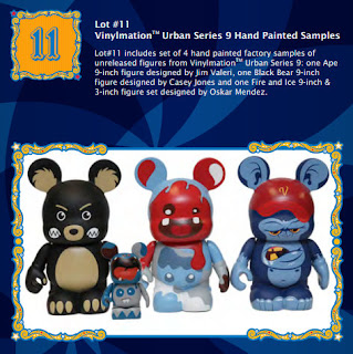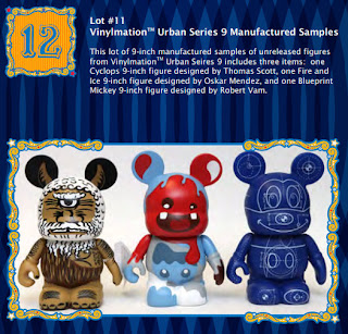 The above two lots show some Urban 9″ figures we never saw released. The artwork for Blue print Mickey can be seen in the display window at Epcot’s Mouse Gears. That lead us to believe he would be released at some date. I really love Jim Valeri’s Ape figure! Great use of mold and design. Thomas Scott’s Cyclopes is pretty darn kick but as well. I really like the drawing style that looks like a storybook.