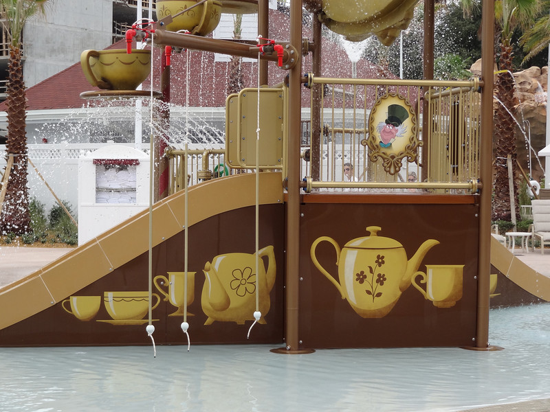 WDWNT Reporter Adam Roth took a short trip over to Disney’s Grand Floridian Resort and Spa to see the progress on many construction projects, including the completion of the new children’s water-play area themed to Alice in Wonderland. Let’s take a look: