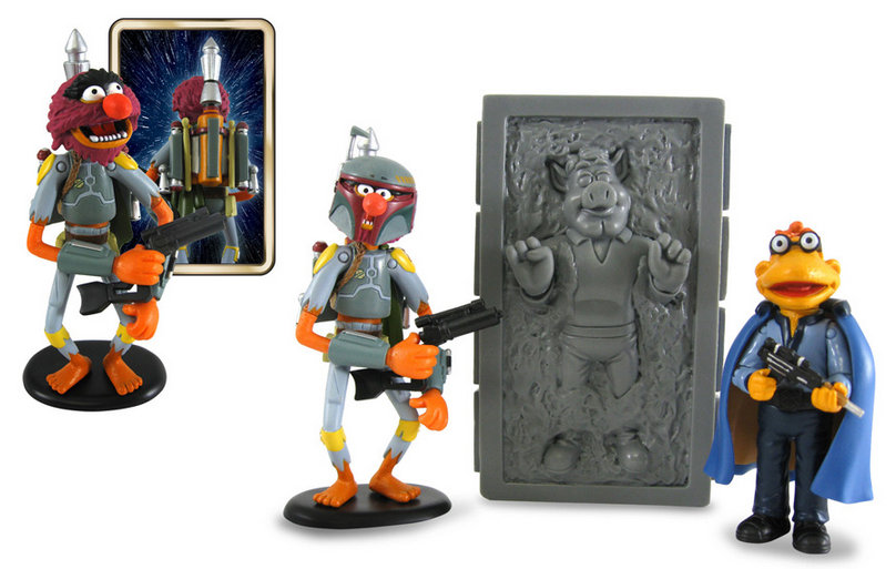The next installment of Muppets Star Wars will also release at Celebration (and later at the parks). This set features Animal as Boba Fett and Scooter as Lando with a Carbonite Han Solo.
