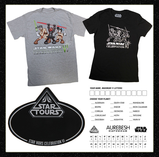 There will be two event tee-shirts with Disney characters as Star Wars characters. They are also introducing an Aurebesh nametag with a few additional destinations not found during Star Wars Weekends 2012.