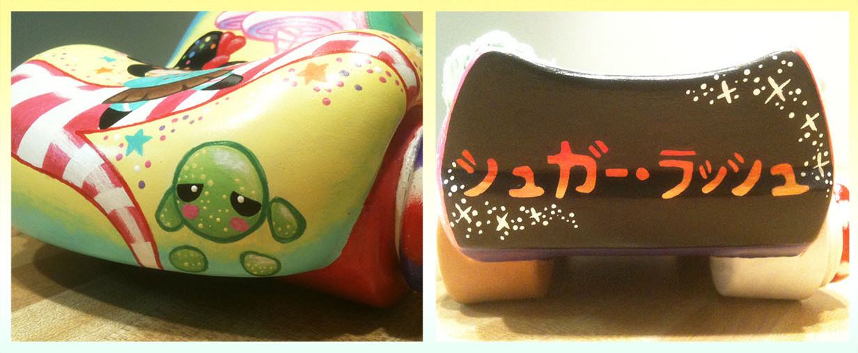 DV: You custom painted a Vinylmation 95 to look like a Sugar Rush Racer from Wreck-it-Ralph. This was a brilliant idea! First off… is it edible?