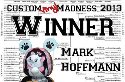 And it’s done! The first annual Custom VinylMadness is over and the winner is Aristocats, by Mark Hoffmann. Look for an interview with Mark Hoffmann on an upcoming episode of the Destination Vinylmation podcast. Also, Mark has won three months of advertising on the DV website and podcast! We would like to thank all the custom artists who sent in customs for the Madness and we would also like to thank all the voters who helped us crown this year’s winner! See the entire bracket here. |