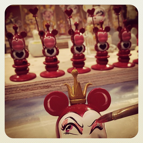 With its mix of 32 customized 3″and Jr. Vinylmation figures, all hand-embellished, sculpted & painted, it’s an insane detail feast for your eyes! The Chess Board is laden with solid, extreme-attention-to-detail craftsmanship….. and surprise! There’s a tiny little sculpted Alice watching the game on the side lines, among the various flora, fauna, and crafted elements framing the playing field of these mini marvels… enjoy your trip to Wonderland!