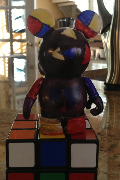 This week we got an email from aspiring 11 year old artist who wanted to show off his first custom piece of artwork. We love custom artists here at Destination Vinylmation, and especially enjoy when we can show off people who might not have the ability to show their artwork off themselves. So here’s Oliver and his Primary Mickey.