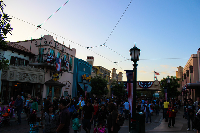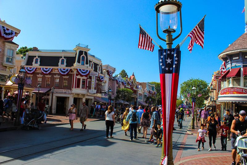 Buena Vista Street seasonal decorations are also present Memorial Day through 4th of July.