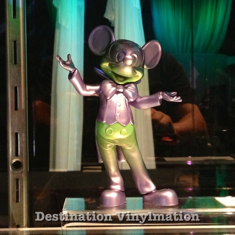 I appreciate new ideas incorporated into the Vinylmation line. I may not collect all of the various platforms, but I like the fact that we have them and artists try new things. I really like the idea of Meet and Greet Mickey. I think the design looks extraordinary and perfectly represents a walk around costume character of the 1970’s. A collectible like this just doesn’t belong in my collection. Possibly if it was a Donald Duck, I would think differently. But even then, a silver figure with a hue of green on it is not enough for me to take my wallet out. I am a collector, but I don’t collect for the sake of an item being LE and branded “a collectible.” I collect the original Mickey shaped 3″ Vinylmation because the figure itself is just a canvas and the artists use imagination to give them character that appeal to me. This feels like the canvas is trying too hard to BE the character and it doesn’t matter what is painted upon it. Meet and Greet Mickey would appeal to me if they were painted upon with designs, whether it be park or artistic. I would not buy them, but at least then, I would be more able to appreciate the artist value and collectibility of the figure. The way it is, I see the appeal of the figure itself, but not how it is used.