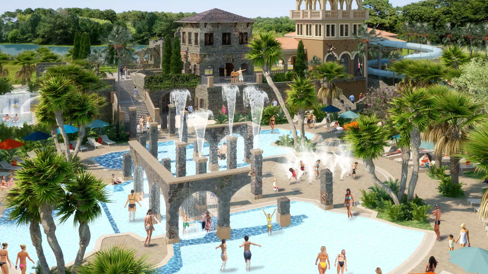 - Explorer Island – A five acre (two hectare) playground packed with fun for all ages, Explorer Island includes a 7,590 square foot (705 square metre) family pool with a lazy river winding around a “ruined” mansion, climbing wall, waterslides, and a Kids for All Seasons program. Look forward to beach volleyball, basketball, a video gaming centre, outdoor movie nights on the Starstruck screen, and more.