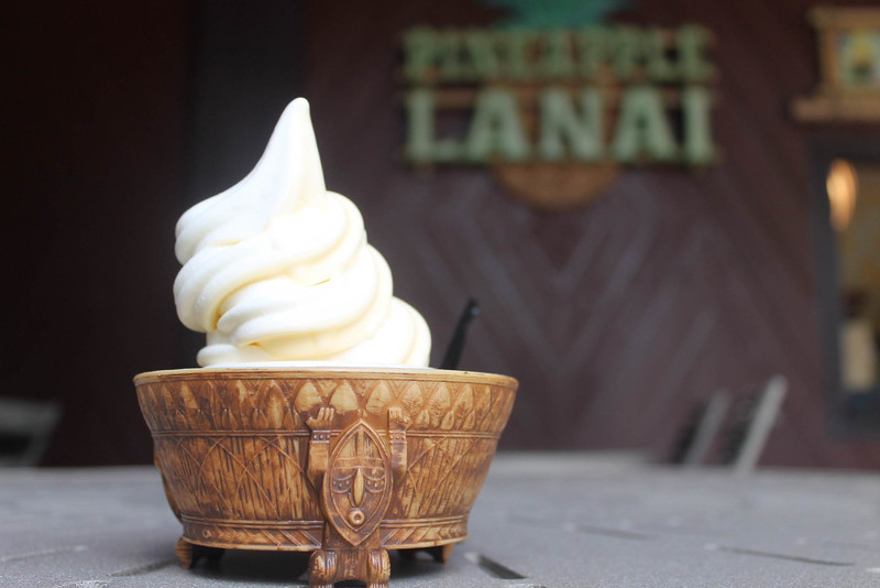 The outdoor Dole Whip service window, Pineapple Lenai opened last week, offering dole whip in a Tiki Room souvenir bowl!