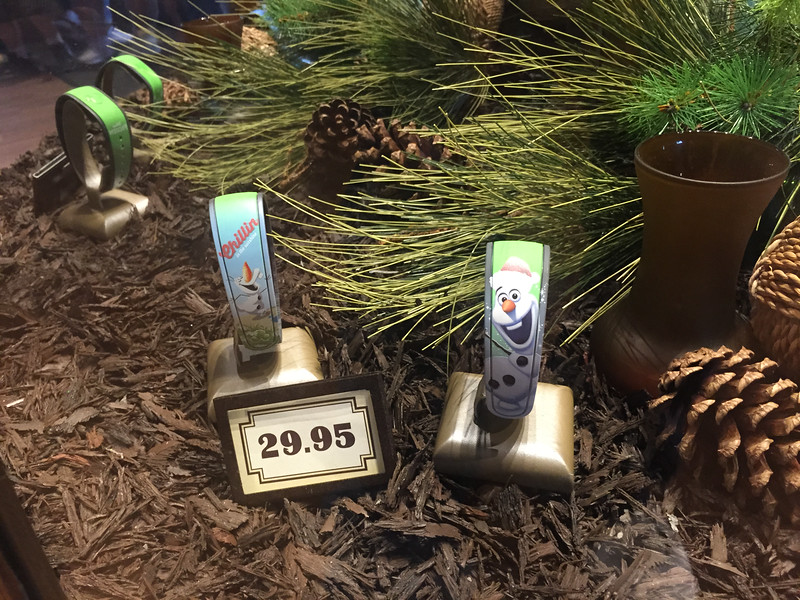 Both the summer and holiday Olaf MagicBands available at Wandering Oaken’s