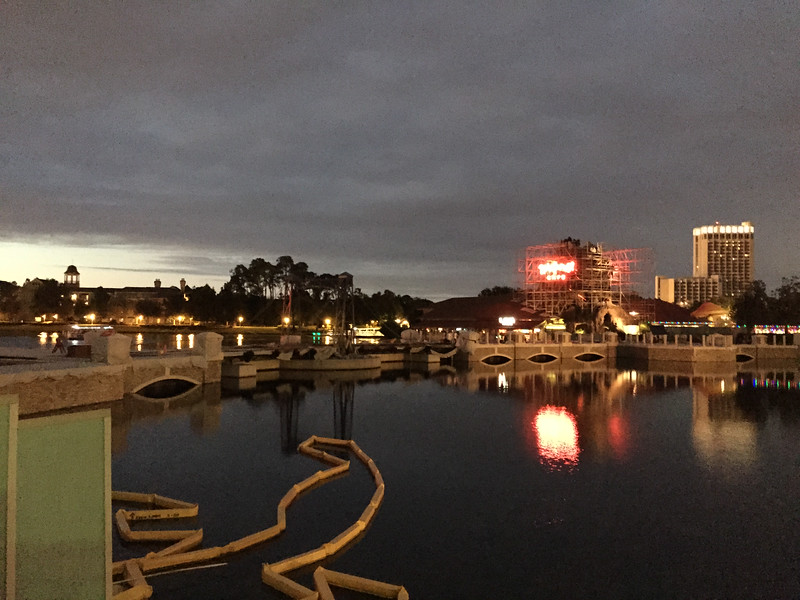Work continues on the bridge in the Marketplace over Lake Buena Vista