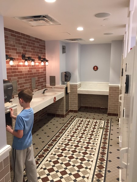 This facade we thought might be a restaurant is actually restrooms and they are open now