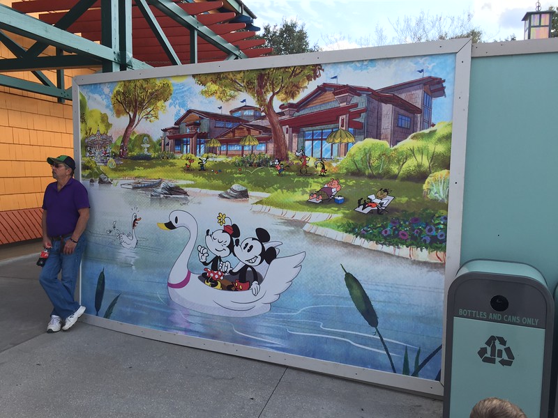 Some new artwork featuring Mickey Mouse and the gang that will soon appear inside the expanded World of Disney store is now on the construction walls