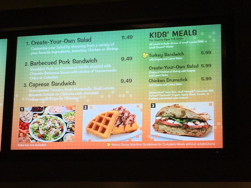 The kid’s menu at 50’s Prime Time Cafe features Miles from Tomorrowland