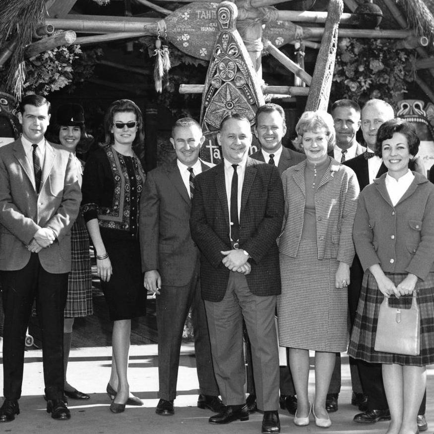 Jack Lindquist (fourth from left) has a smoke with associates from J. Walter Thompson including future Watergate conspirators Dwight Chapin (left) and H.R. Haldeman (third from right). Image © Disney