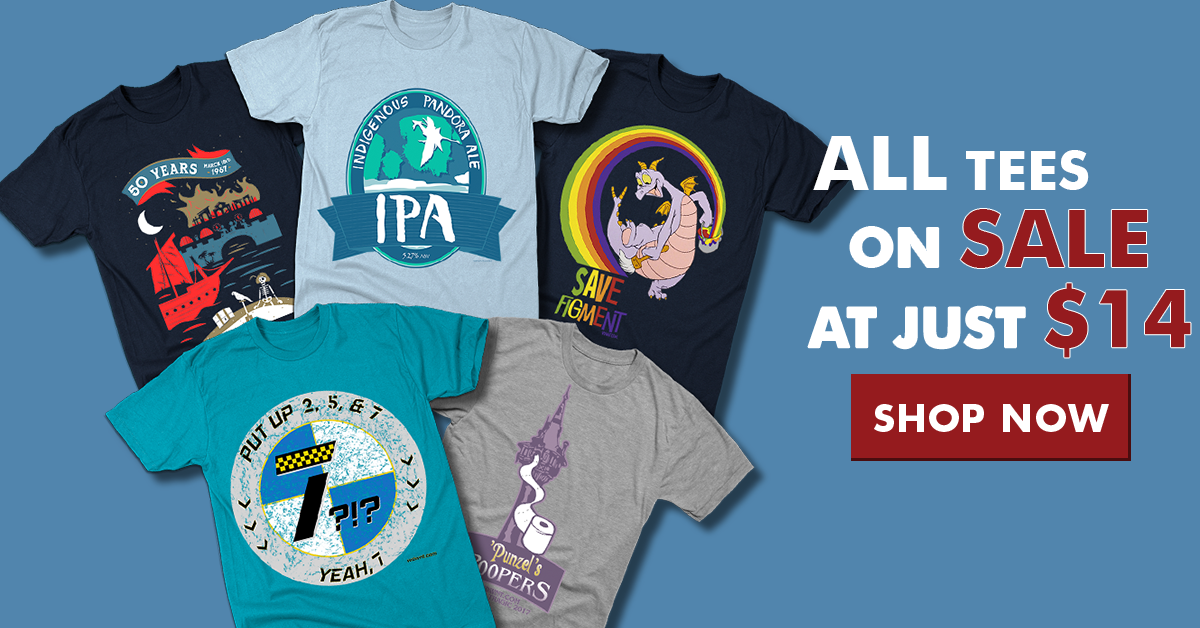 All of our newest designs, such as Indigenous Pandora Ale, Save Figment, Captain EO Crunch, and ‘Punzel’s Poopers, plus all your classic favorites, including Seven, Tom Corless’ Mean Tweets, and Make the Movie Ride Great Again, are all on sale!