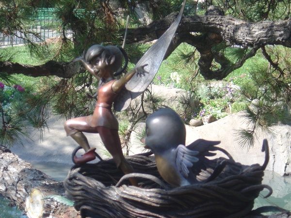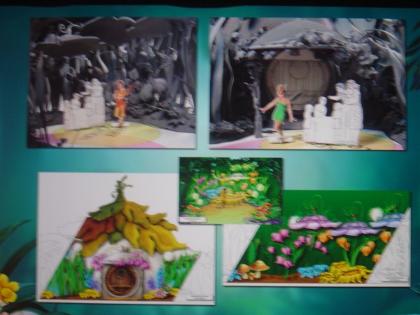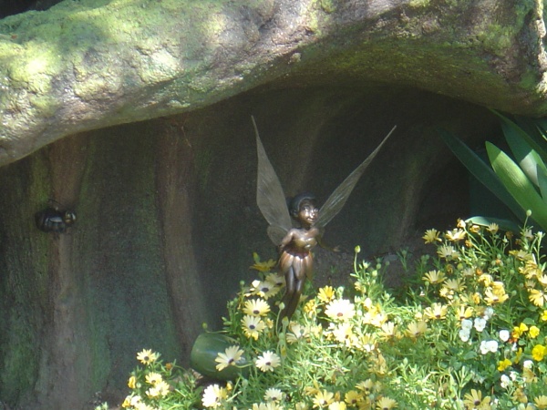 Concept art of the 5 Fairy statues that line the queue of Pixie Hollow.