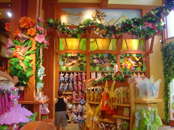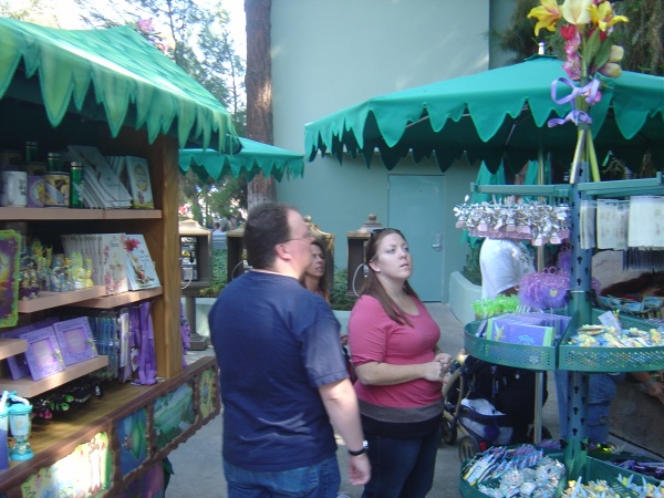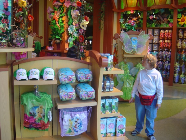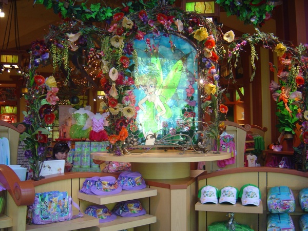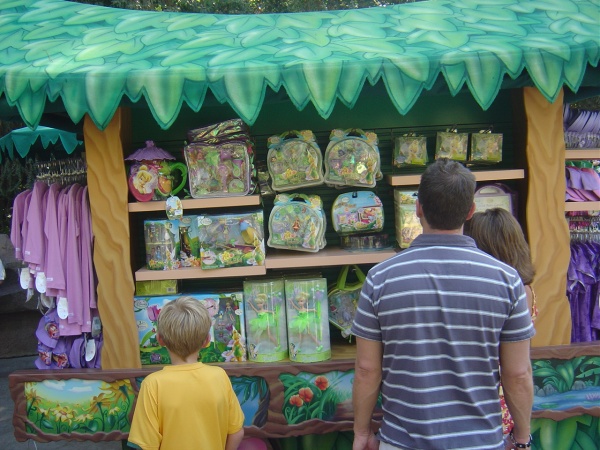 An obligatory merchandise cart is at the exit of Pixie Hollow.