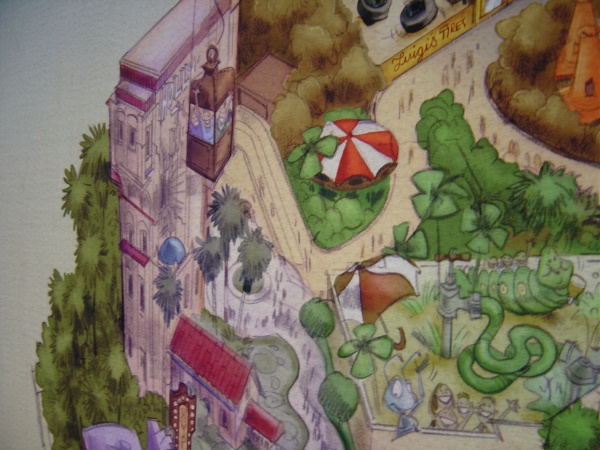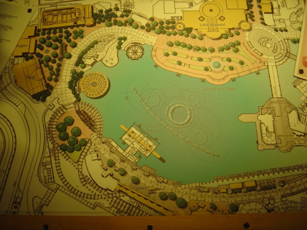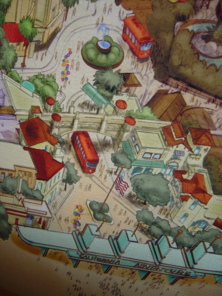 Close-ups of the amazing, cartoony DCA map that hangs in the Screening Room. Paradise Pier.