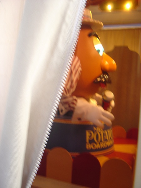 Mr. Potato Head was behind the curtains when I went on Toy Story Midway Mania.