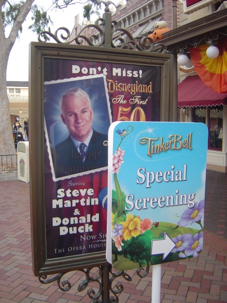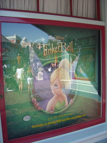 A poster for Tinker Bell outside the Penny Arcade on Main Street.