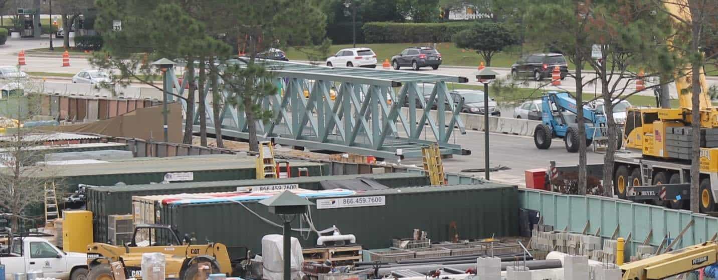 The small park area in front of Planet Hollywood and the Orange Garage entrance is nearing completion