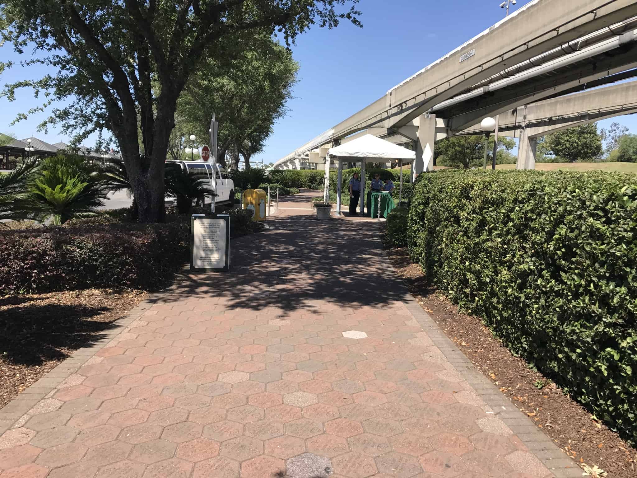 As you all know by now, security checkpoints were moved out from the front of the Magic Kingdom. If you’re walking over from the Contemporary, you’ll be stopped here for screening.