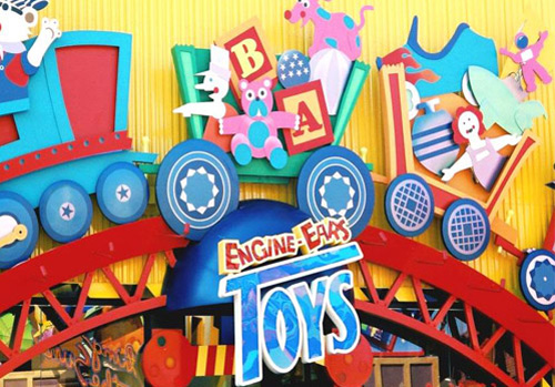 Look at that “Candy” sign by the truck over there. Building straight ahead is Big Top Toys.