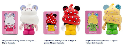 Disney released the Bakery set last Friday and I want to talk to you today about these figures and the feature that surprised me once I opened up the box. This is a 6 figure open window series that retails for $11.95. Not a bad price considering what they could have done. They have charged more for less before. Sports come to mind. The packaging is great. The cupcake figures come in the normal cardboard open window boxes, but have a “string” painted on like they are tied up and delivered fresh just for you from your local bakery.