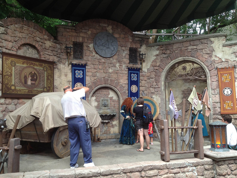 Merida from Brave and her bear-brothers will travel with a troupe of Scottish dancers and this giant bagpipe