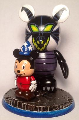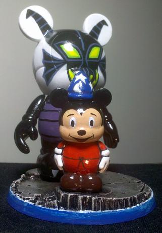 Brian: While Beauty and the Beast is my favorite animated film, my favorite show at Walt Disney World, hands down, is Fantasmic, and I couldn’t wait to make a vinyl inspired by it. Of course, the thing that confounded me was that dragon! The body wasn’t a problem since the belly and feet suit a dragon as good as Mickey, but adapting the head was a mess. The fins on the side of the head were troublesome, and I didn’t think it would look right if I extended the dragon’s lower jaw onto the torso of the figure. Before creating this set, I had never made accessories for my figures. I looked at accessories as cheating, so it never occurred to me to glue fins on the side of the head or attach wings and a tail to the back. I decided as much as I hated not having a contiguous head painted on, I would paint the front of the face and the back of the head separately. Of course this made the figure look strange from the side, but I was willing to compromise that. Of course that’s when Disney started creating accessories for their figures like the Have a Laugh series, so I bit the bullet and made a sorcerer’s hat out of dental acrylic for Mickey. That was my very first accessory, and I remember feeling guilty about it! Also, please note that even though the piece is inspired by the Walt Disney World show, I designed the dragon to look more like the Maleficent dragon, which is what the current Disneyland version looks like. Now that Disney released the Animation Series #2 Maleficent dragon, I really like their design approach. In hindsight, I guess I could have painted a contiguous head on my dragon, but I’m proud of my finished set.
